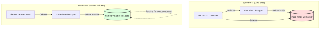 When running a database in Docker without proper configuration, we risk losing all of the agent’s memory if the containers are destroyed or updated. A robust AI agent needs a reliable “long-term memory” to store its progress, past drafts, and critique history. We solved this by utilizing Docker Named Volumes, decoupling data storage from the container’s lifespan.